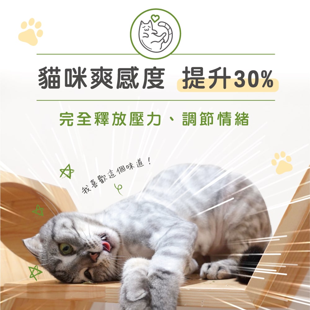 特級貓薄荷草專為貓咪設計,經過百隻貓咪體驗測試,反應率高達89%,能有效釋放貓咪壓力,讓牠們的爽感度大幅提升。