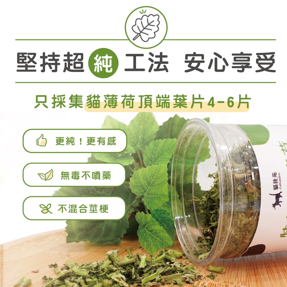 - 嚴選頂端葉片: 僅選用貓薄荷的頂端4-6片葉子,不混雜莖梗部分,確保最高品質與純度。